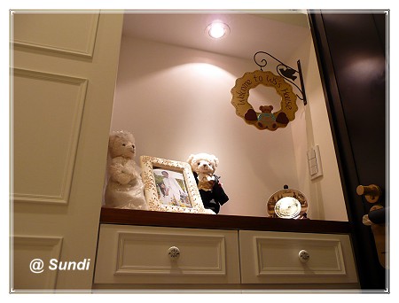 所以設計師便幫我在內玄關設計一個充滿美式古典風格的展示櫃,